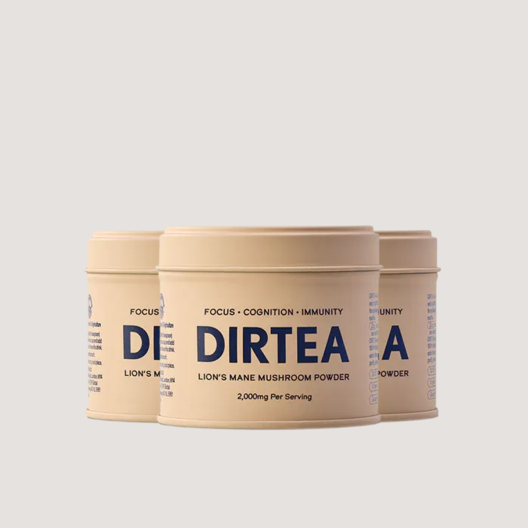 DIRTEA Lion's Mane mushroom powder is infused with zinc boosts focus, enhances memory, and supports healthy digestion.