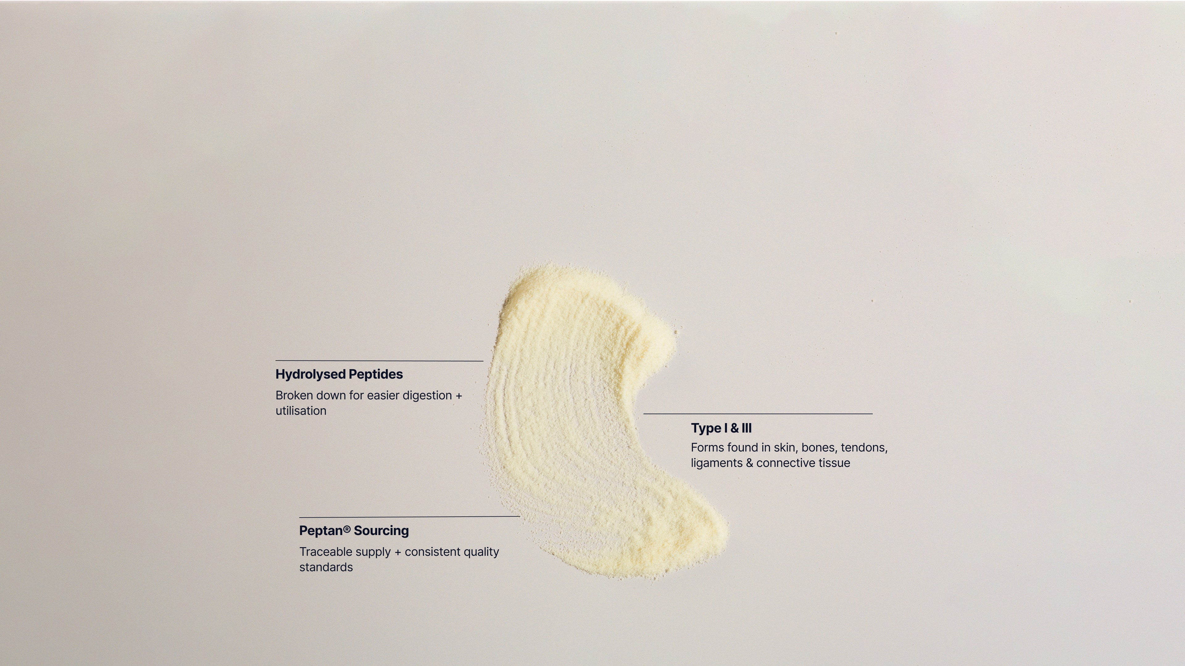 Peptan® is chosen for its quality, consistency, and bioavailability, ensuring the collagen you consume is in a form the body can efficiently absorb and utilise.