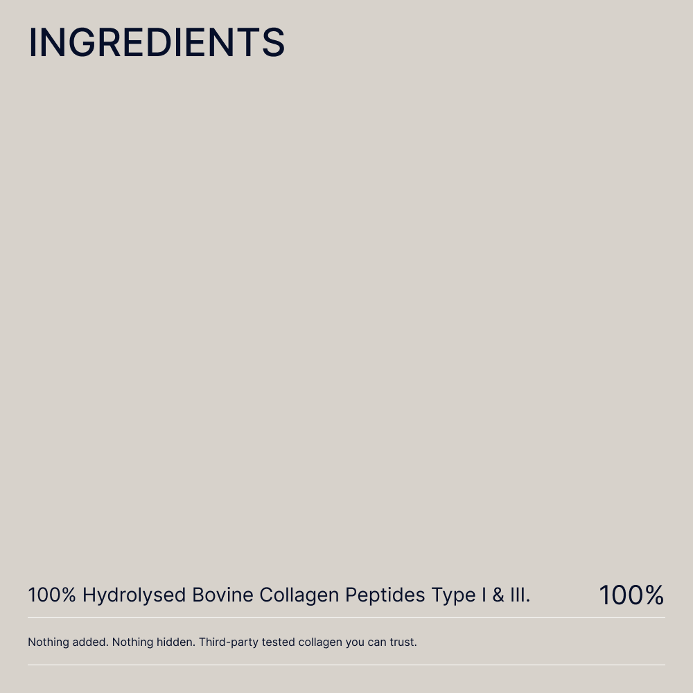 100% Hydrolysed Bovine Collagen Peptides Type I & III.